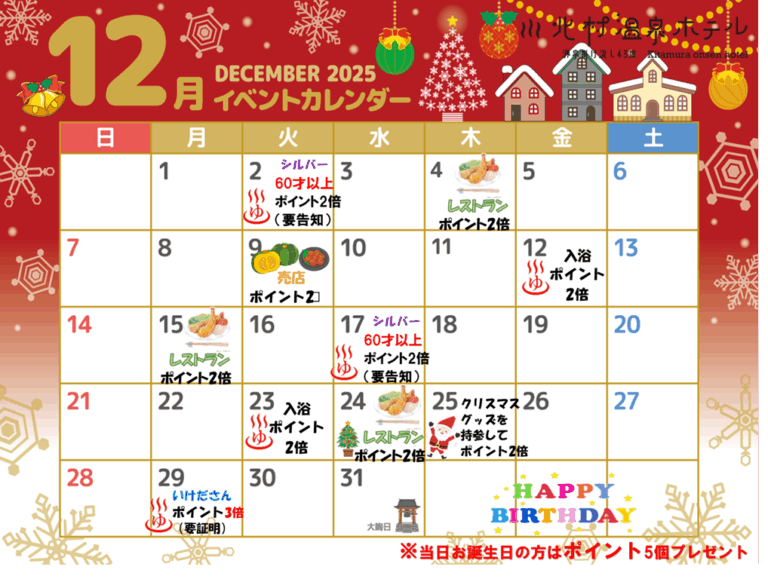 12月もポイントアップのイベント盛りだくさんです。