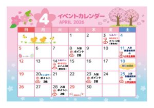 いつも北村温泉ホテルをご利用いただき誠にありがとうございます! 4月のイベントカレンダーができま